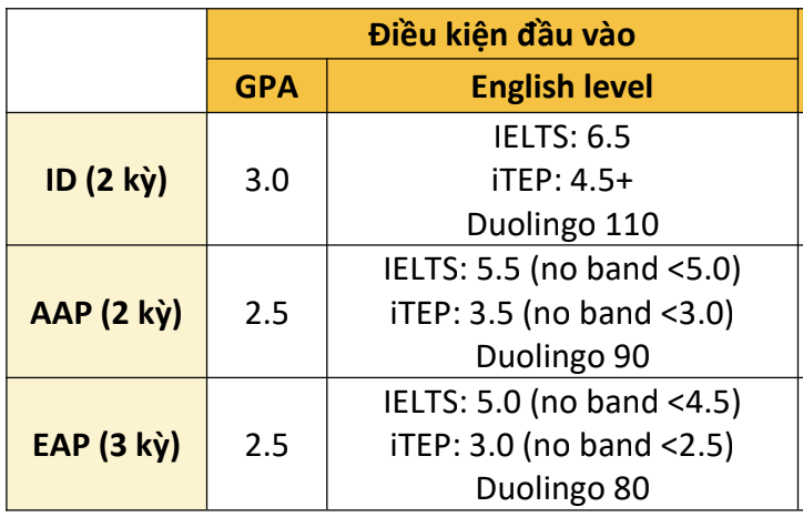 - EAP: Extended Accelerator Program – Chương trình năm 1 cho sinh viên quốc tế 3 kỳ